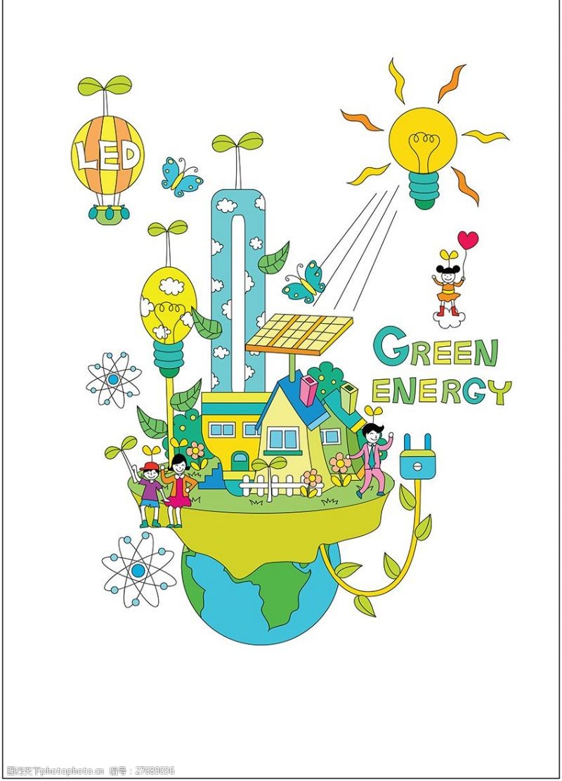 "卡通科技城市人物 环保科技的未来蓝图",